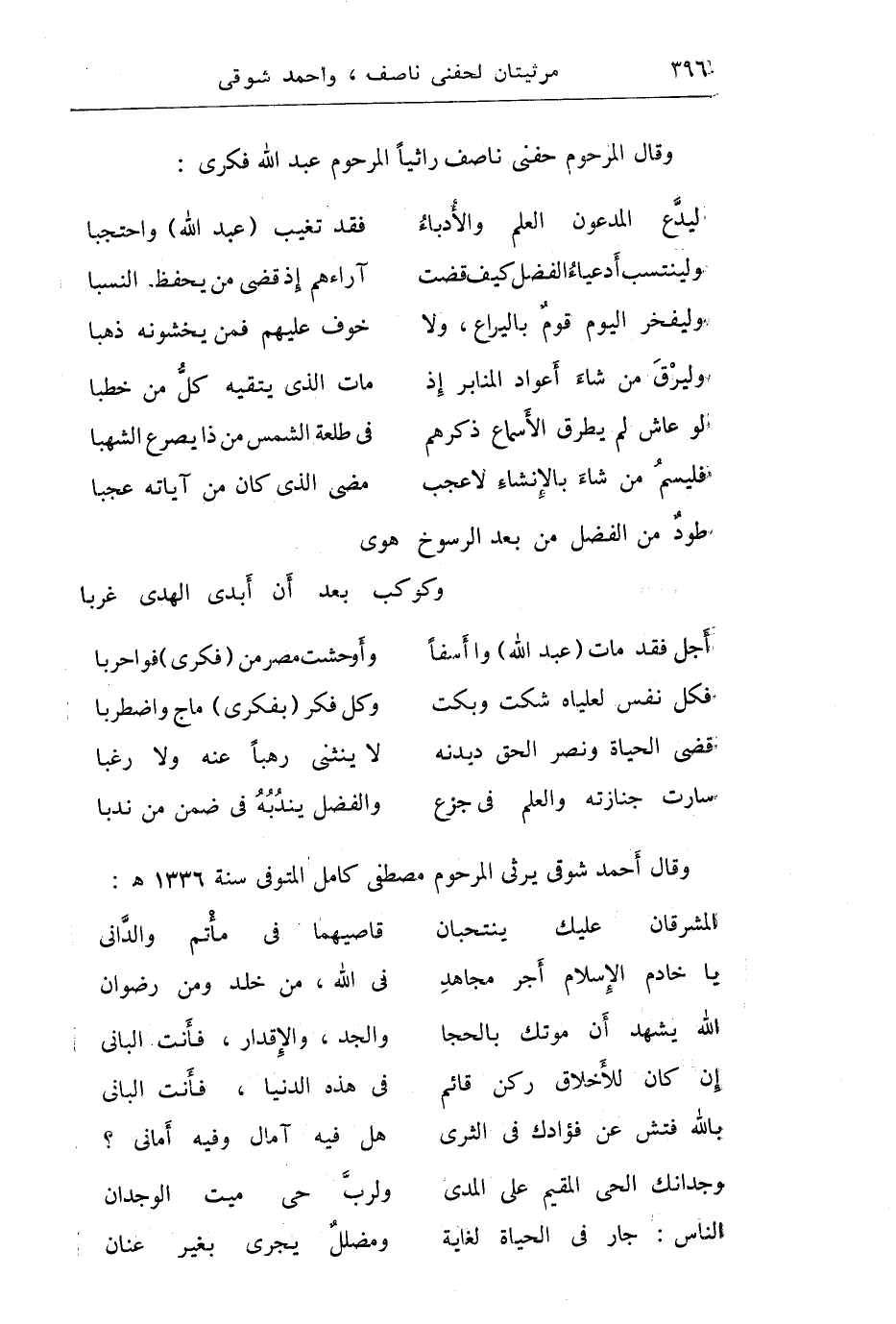 يزجون نعشك في السّناء وفي السّنا ... فكأنما في نعشك القمران