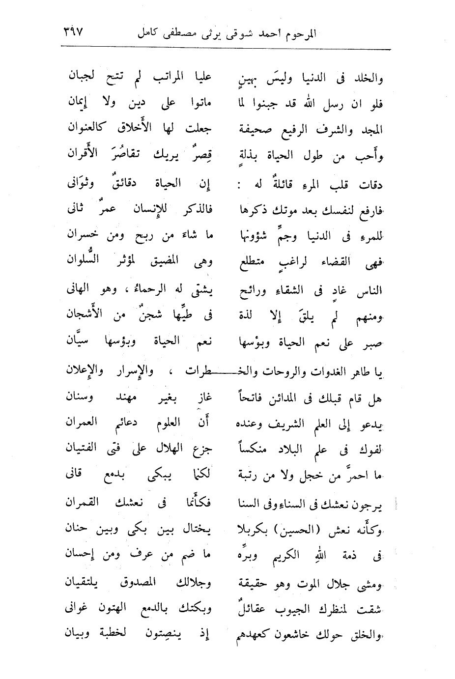 يا صبَّ مصر ويا شهيد غرامها ... هذا ثرى مصرِ فنم بأمان