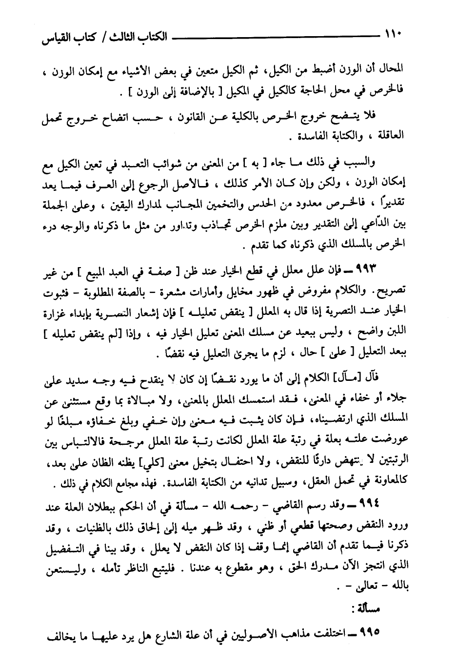 994- وقد رسم القاضي رحمه الله مسألة في أن الحكم ببطلان العلة عند ورود النقص وصحتها قطعي أو ظني وقد ظهر ميله إلى إلحاق ذلك بالظنيات وقد ذكرنا فيما تقدم أن القاضي إنما وقف إذ كان النقض لا يعلل وقد بينا في التفصيل الذي انتجز الآن مدرك الحق وهو مقطوع به عندنا فليتبع الناظر تأمله وليستعن بالله تعالى.
