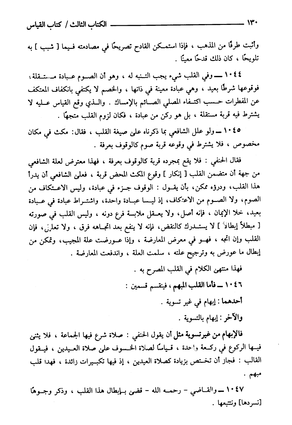 1047- والقاضي رحمه الله قضى بإبطال هذا القلب وذكر وجوها [نسردها] ونتتبعها.
