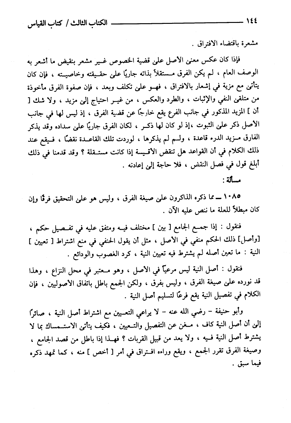 1085- مما ذكره الذاكرون على صيغة الفرق وليس هو على التحقيق فرقا وإن كان مبطلا للعلة ما ننص عليه الآن.