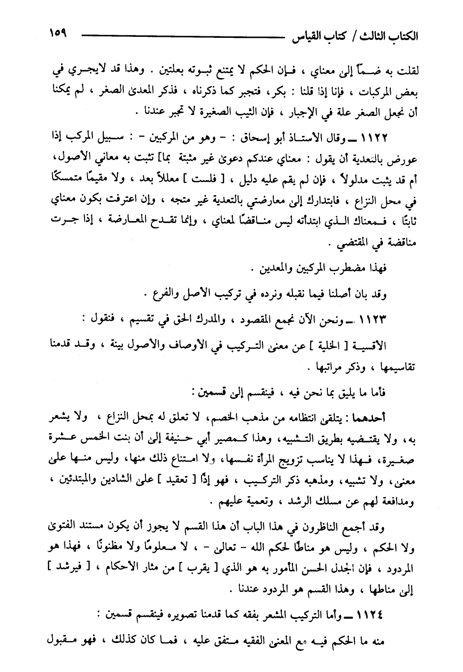 1123- ونحن الآن نجمع المقصود والمدرك الحق في تقسيم فنقول: