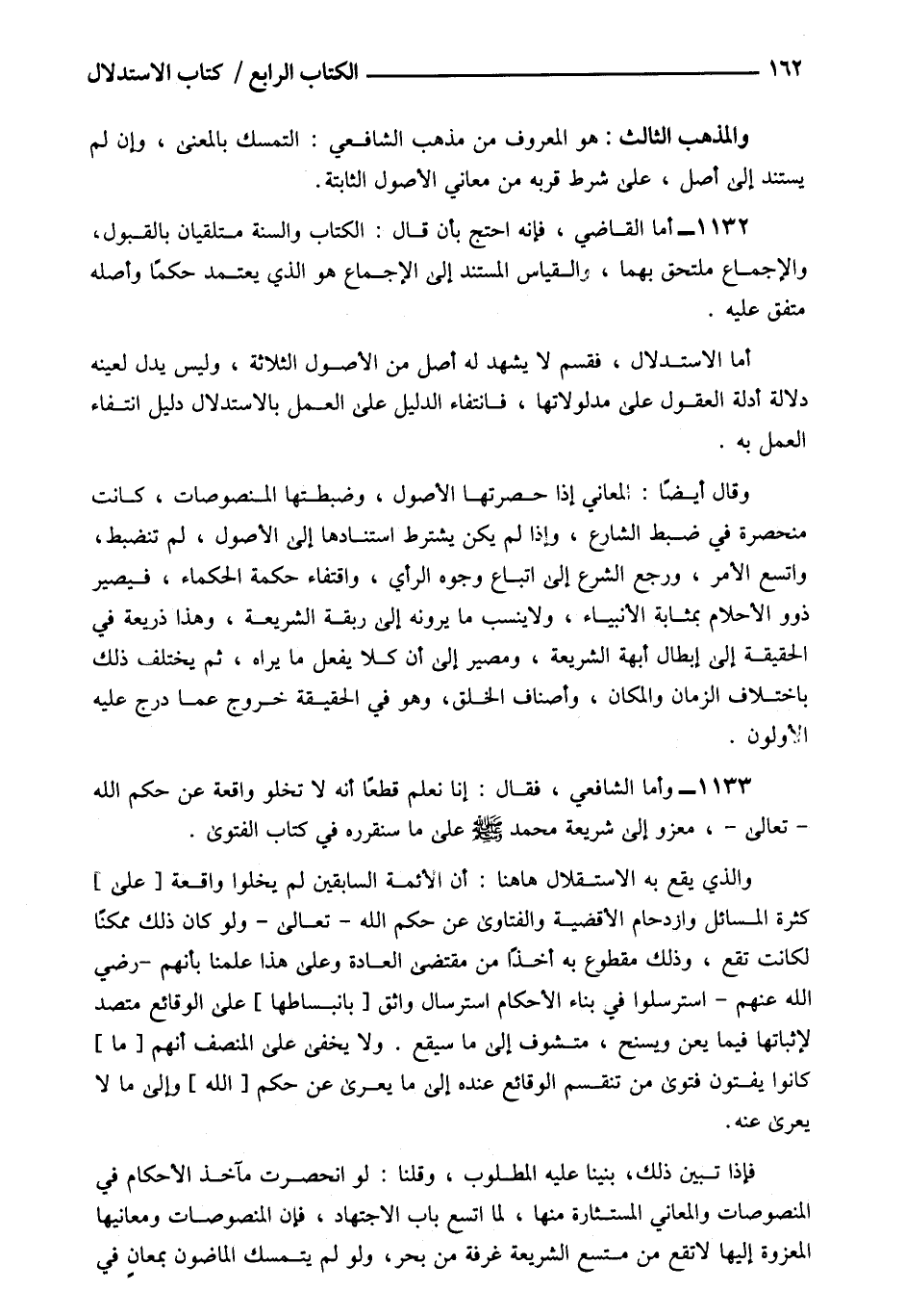 1133- وأما الشافعي فقال: إنا نعلم قطعا أنه لا تخلو واقعه عن حكم الله تعالى معزو إلى شريعة محمد صلى الله عليه وسلم على ما سنقرره في كتاب الفتوى.