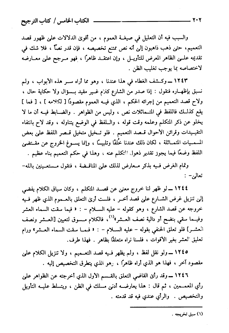 1245- ولو نقل لفظ ولم يظهر فيه قصد التعميم ولا تنزيل الكلام على مقصود آخر فهذا هو الذي أراه ظاهرا وهو الذي يتطرق التخصيص إليه.