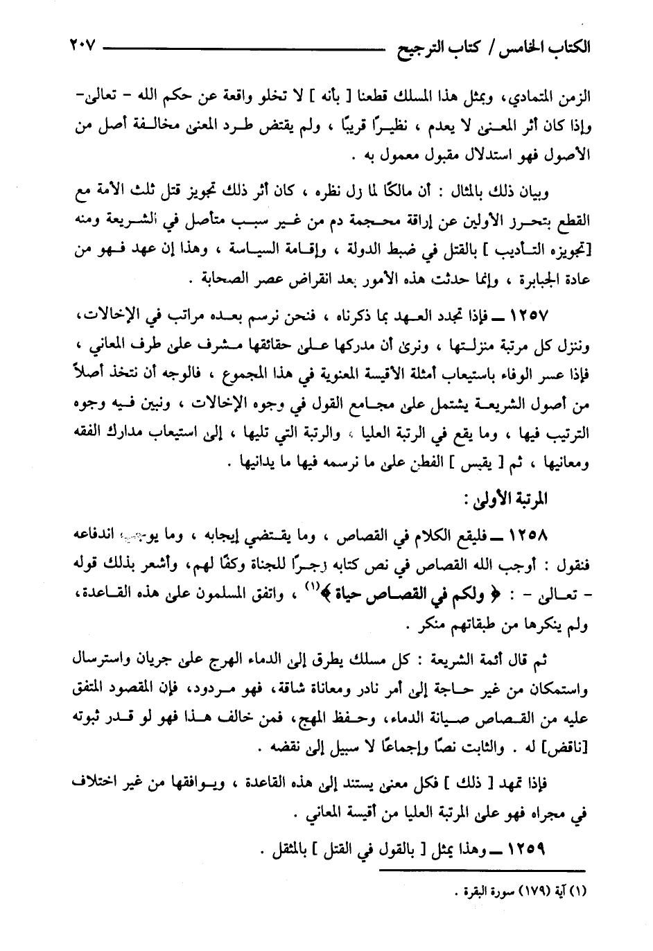 1257- فإذا تجدد العهد بما ذكرناه فنحن نرسم بعده مراتب في الإخالات وننزل كل مرتبة منزلتها ونرى أن مدركها على حقائقها مشرف على طرف المعاني فإذا عسر الوفاء باستيعاب أمثلة الأقيسة المعنوية في هذا المجموع فالوجه أن نتخذ أصلا من أصول الشريعة يشتمل على مجامع القول في وجوه الإخالات ونبين فيه وجوه الترتيب فيها وما يقع في الرتبة العليا والرتبة التي تليها إلى استيعاب مدارك الفقه ومعانيها ثم [يقيس] الفطن على ما نرسمه فيها ما يدانيها.
