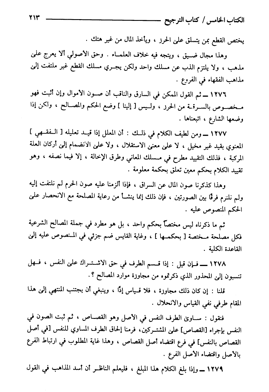 1276- ثم القول الممكن في السارق والناقب أن صون الأموال وإن اثبت فهو مخصوص بالسرقة من الحرز وليس [إلينا] وضع الحكم والمصالح ولكن إذا وضعها الشارع اتبعناها.