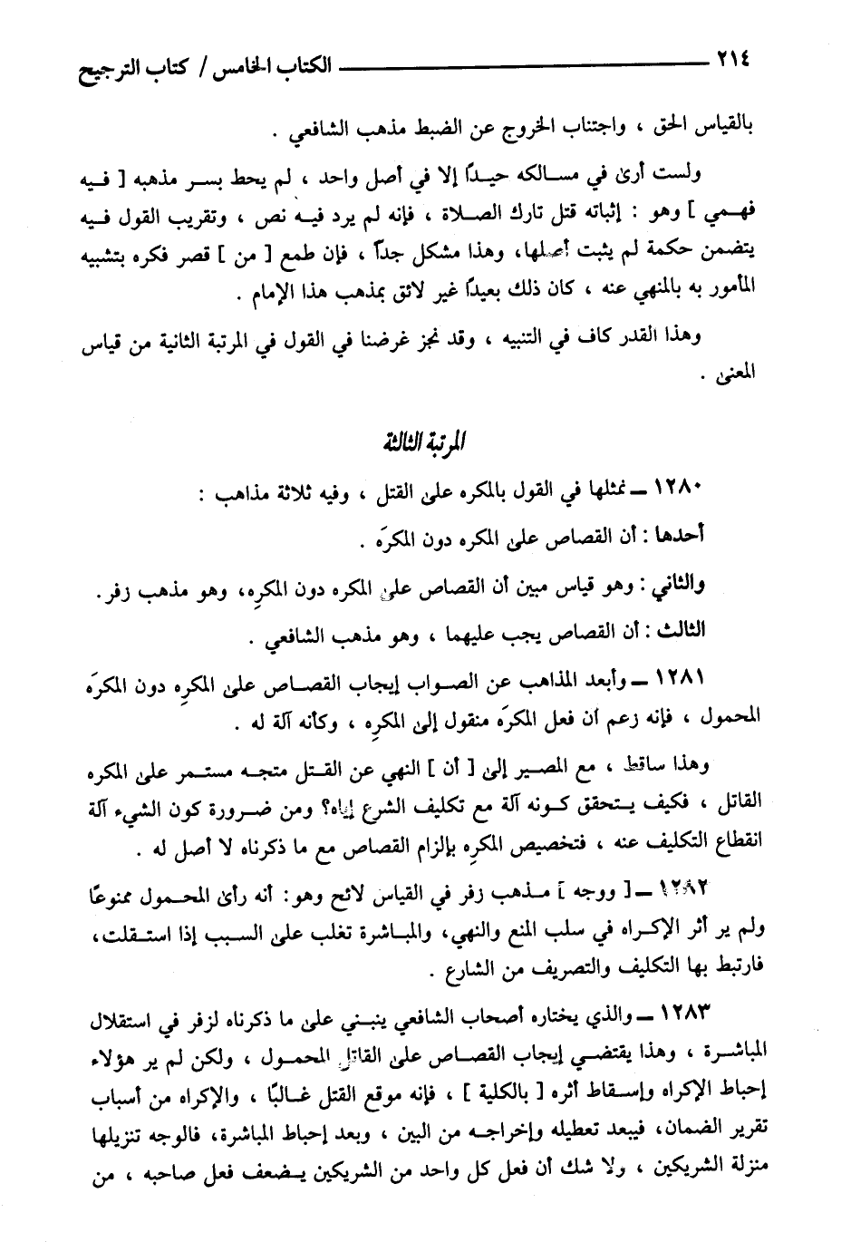 1280- نمثلها في القول بالمكره على القتل وفيه ثلاثة مذاهب: