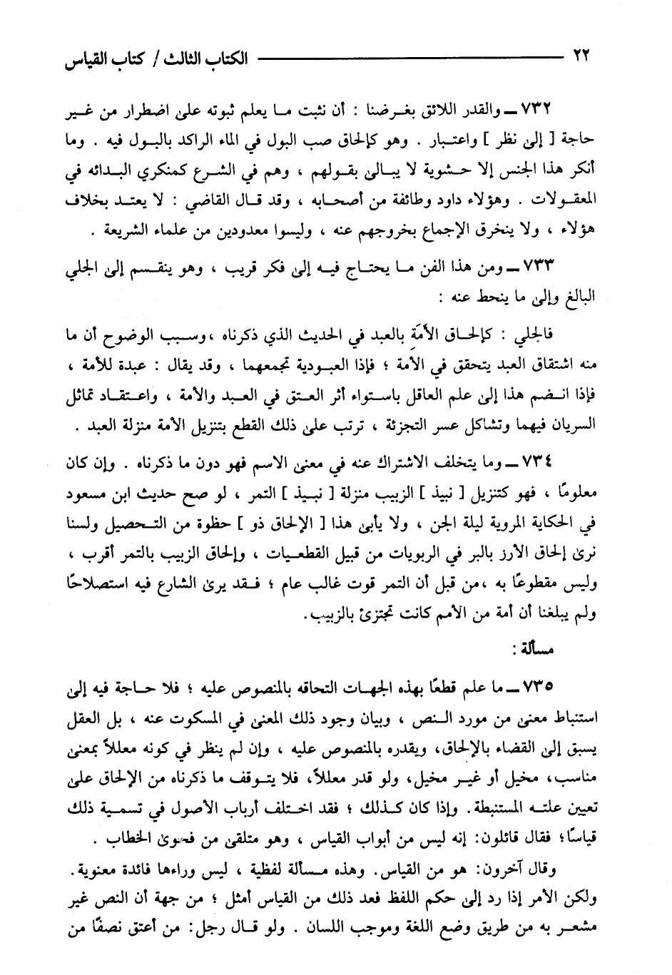 733- ومن هذا الفن ما يحتاج فيه إلى فكر قريب وهو ينقسم إلى الجلي البالغ وإلى ما ينحط عنه: