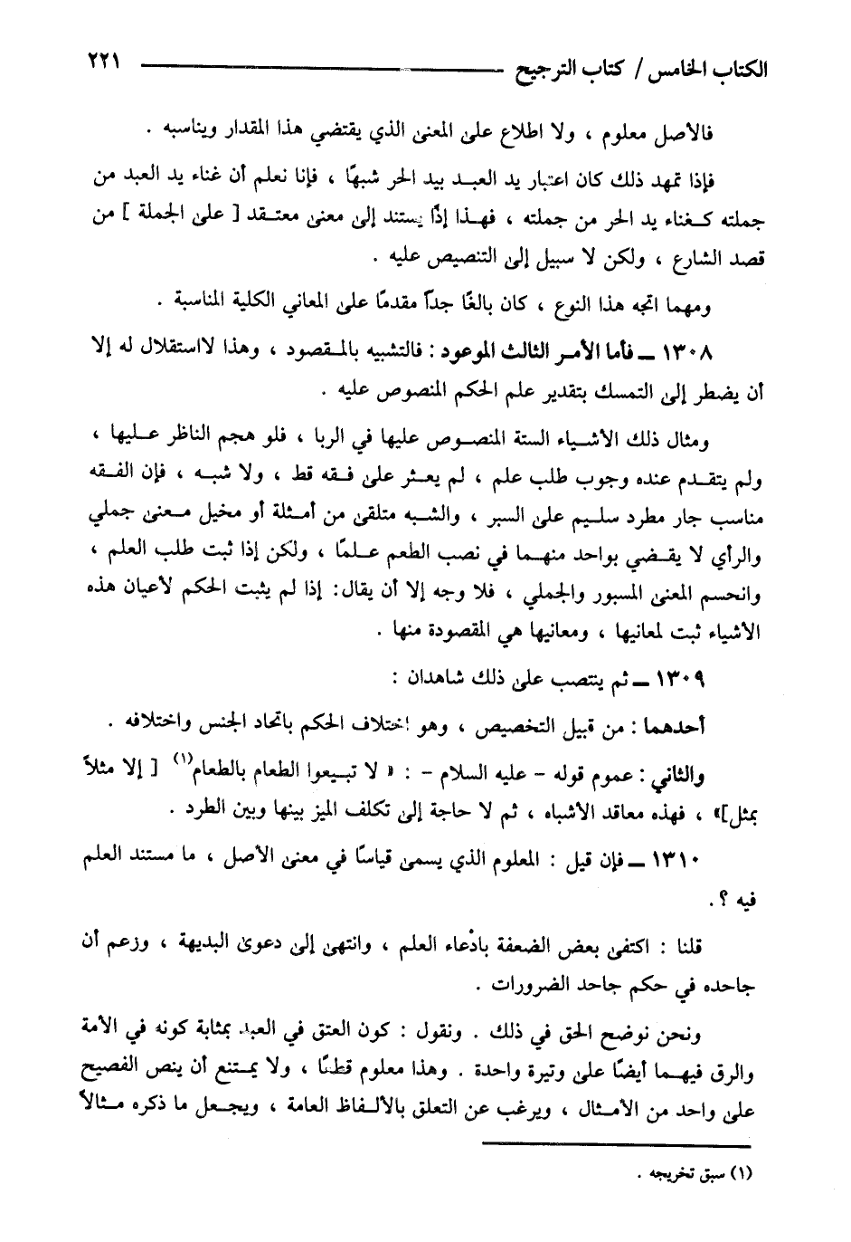 1308- فأما الأمر الثالث الموعود: فالتشبيه بالمقصود وهذا لا استقلال له إلا أن يضطر إلى التمسك بتقدير علم الحكم المنصوص عليه.