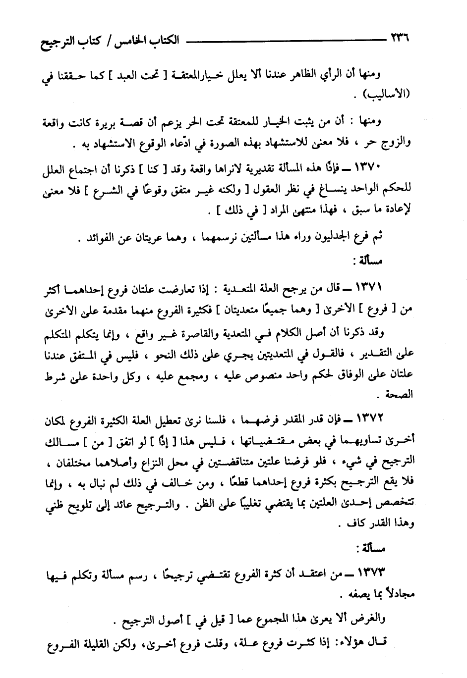 1373- من اعتقد أن كثرة الفروع تقتضي ترجيحا رسم مسألة وتكلم فيها مجادلا بما يصفه.