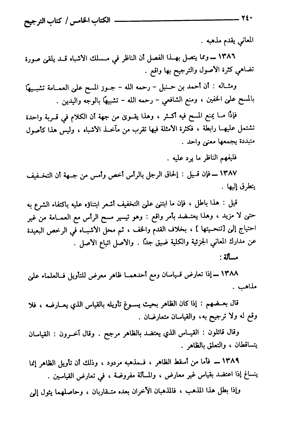 1386- ومما يتصل بهذا الفصل أن الناظر في مسلك الأشباه قد يلقى صورة تضاهي كثرة الأصول والترجيح بها واقع.