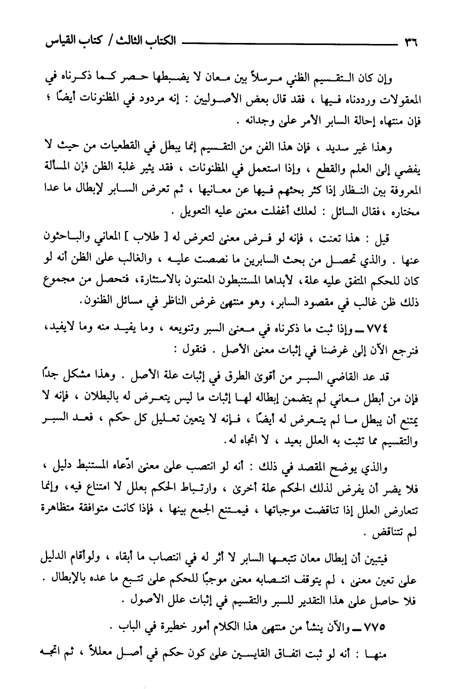774- وإذا ثبت ما ذكرناه في معنى السبر وتنويعه وما يفيد منه وما لا يفيد فنرجع الآن إلى غرضنا في إثبات معنى الأصل فنقول: