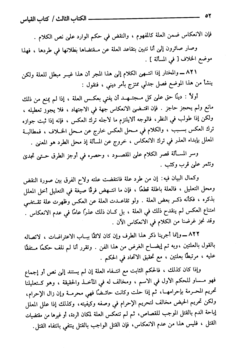 821- والمختار إذا انتهى الكلام إلى هذا المجر أن هذا غير مبطل للعلة ولكن ينشأ من هذا الموضع فصل جدلي ممتزج بأمر ديني فنقول.