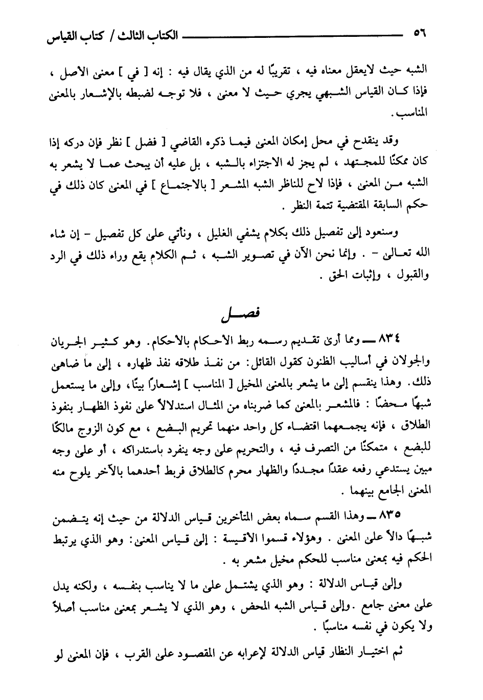 835- وهذا القسم سماه بعض المتأخرين قياس الدلالة من حيث إنه يتضمن شبها دالا على المعنى.