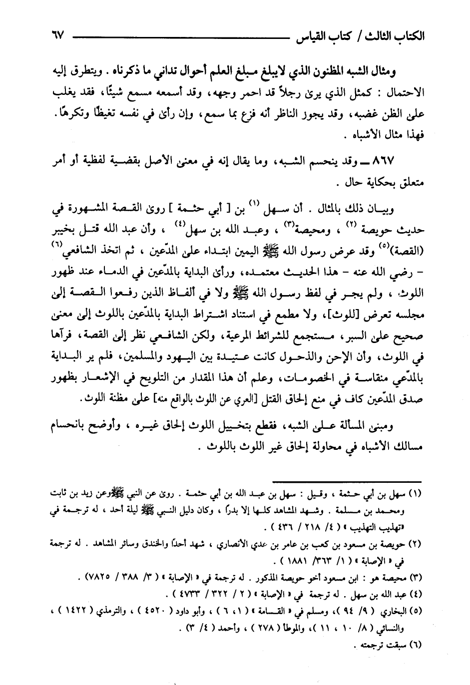 867- وقد ينحسم الشبه وما يقال إنه في معنى الأصل بقضية لفظية أو أمر متعلق بحكاية حال.