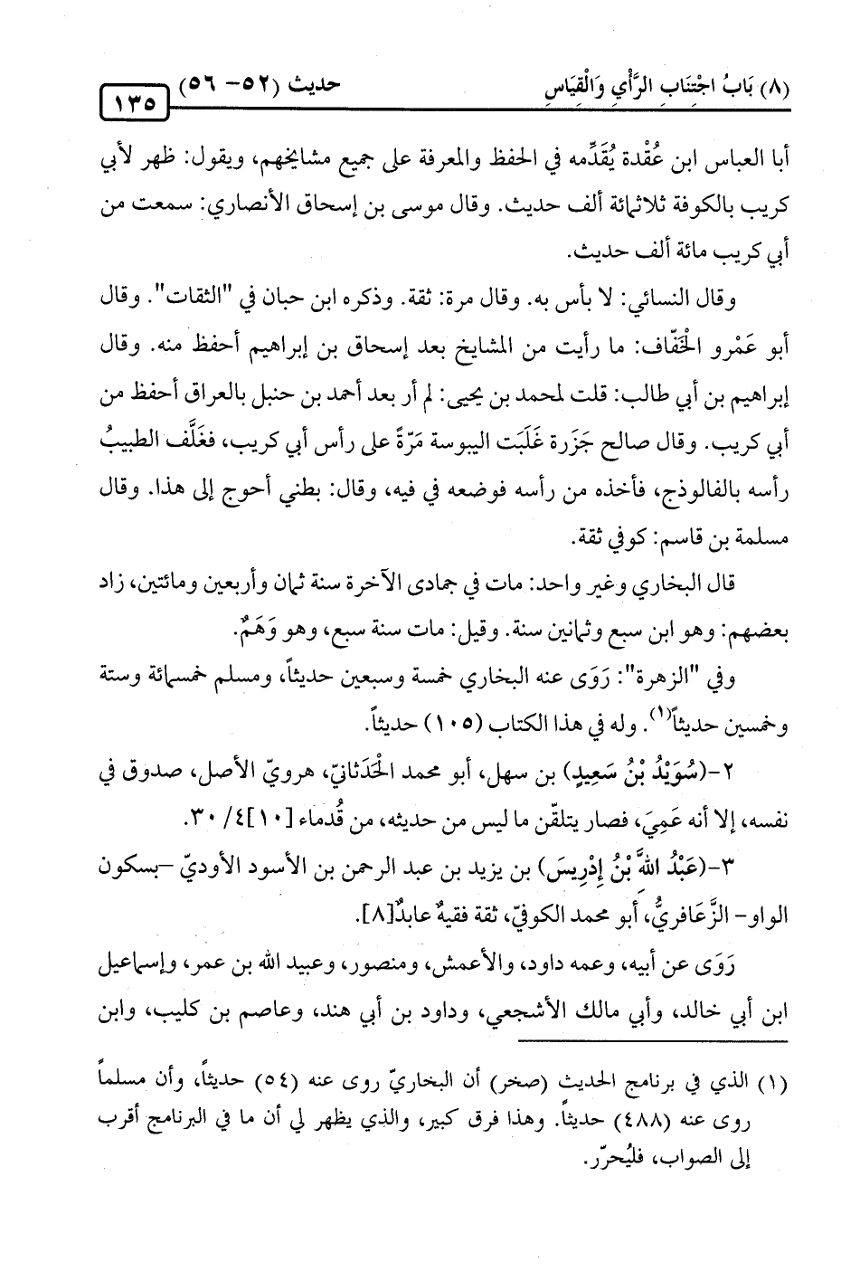 3 - (عَبْدُ اللَّهِ بْنُ إِدْرِيسَ) بن يزيد بن عبد الرحمن بن الأسود الأوديّ -بسكون الواو- الزَّعَافريُّ، أبو محمد الكوفيّ، ثقة فقيهٌ عابدٌ [8].