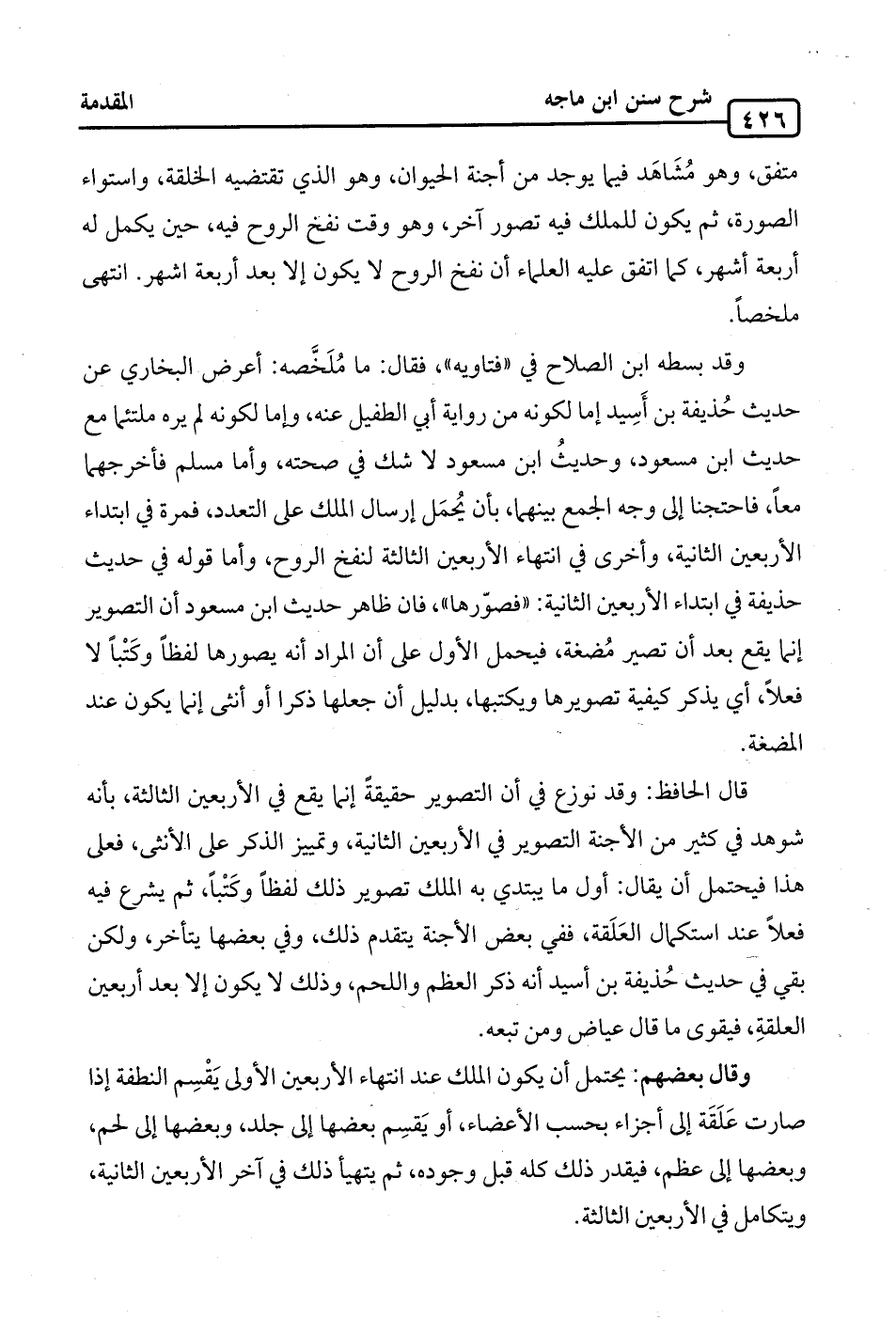 وقد بسطه ابن الصلاح في "فتاويه"، فقال: ما مُلَخَّصه: أعرض البخاري عن حديث حُذيفة بن أَسيد إما لكونه من رواية أبي الطفيل عنه، وإما لكونه لم يره ملتئما مع حديث ابن مسعود، وحديثُ ابن مسعود لا شك في صحته، وأما مسلم فأخرجهما معًا، فاحتجنا إلى وجه الجمع بينهما، بأن يُحمَل إرسال الملك على التعدد، فمرة في ابتداء الأربعين الثانية، وأخرى في انتهاء الأربعين الثالثة لنفخ الروح، وأما قوله في حديث حذيفة في ابتداء الأربعين الثانية: "فصوّرها"، فان ظاهر حديث ابن مسعود أن التصوير إنما يقع بعد أن تصير مُضغة، فيحمل الأول على أن المراد أنه يصورها لفظًا وكَتْبًا لا فعلًا، أي يذكر كيفية تصويرها ويكتبها، بدليل أن جعلها ذكرا أو أنثى إنما يكون عند المضغة.