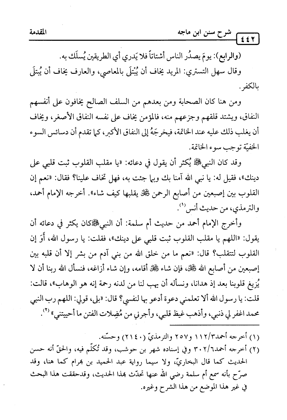 وقد كان النبي -صلى الله عليه وسلم- يُكثر أن يقول في دعائه: "يا مقلب القلوب ثبت قلبي على دينك"، فقيل له: يا نبي الله آمنا بك وبما جئت به، فهل تخاف علينا؟ فقال: "نعم إن القلوب بين إصبعين من أصابع الرحمن عز وجل قلبها كيف شاء". أخرجه الإمام أحمد، والترمذي، من حديث أنس (¬1).