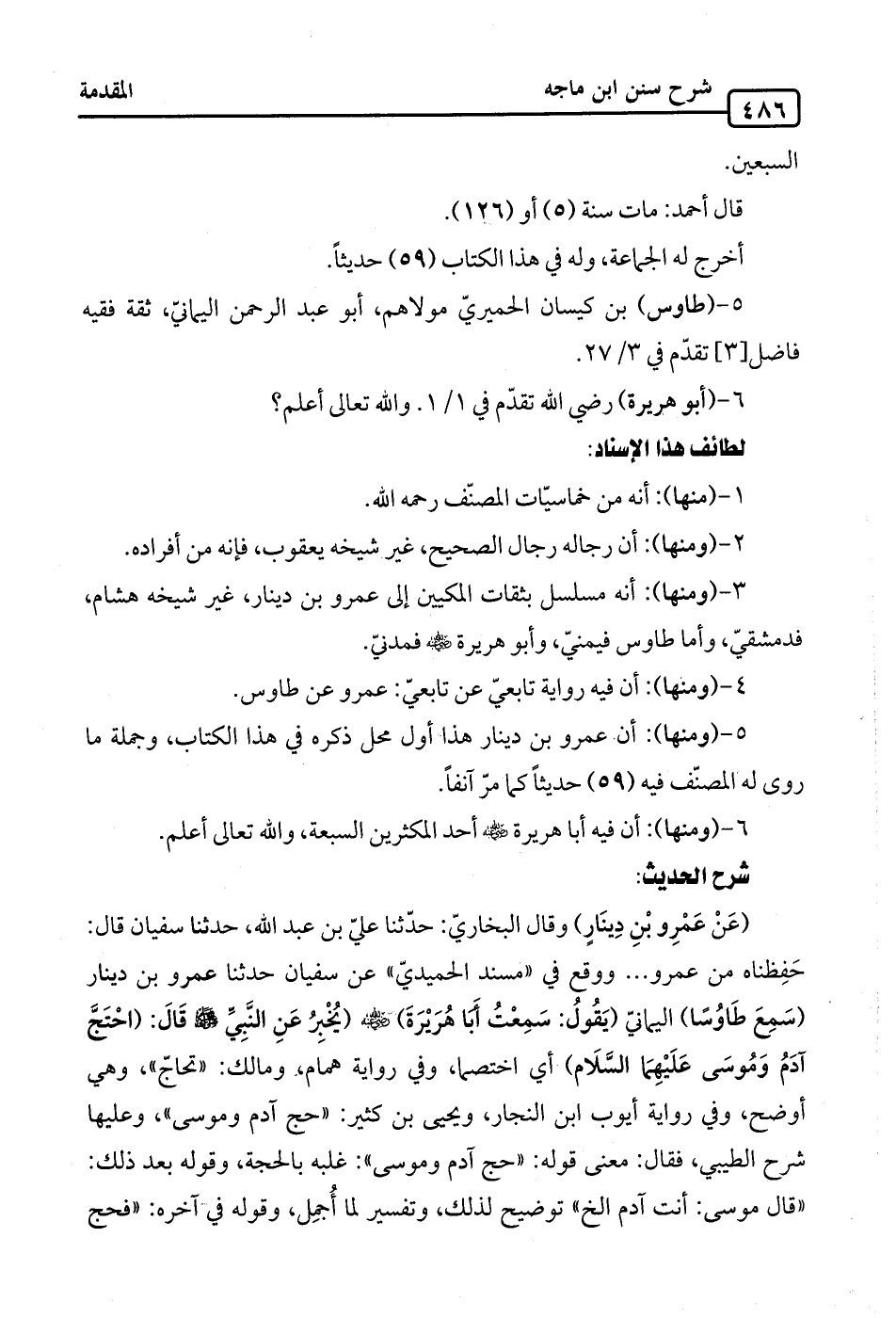 5 - (ومنها): أن عمرو بن دينار هذا أول محل ذكره في هذا الكتاب، وجملة ما روى له المصنّف فيه (59) حديثًا كما مرّ آنفًا.