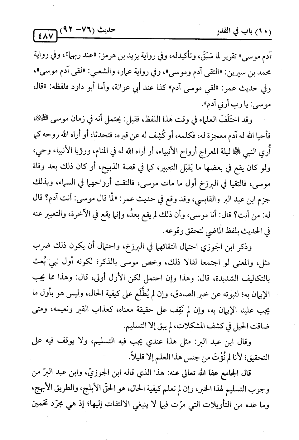 وقال ابن عبد البر: مثل هذا عندي يجب فيه التسليم، ولا يوقف فيه على التحقيق، لأنا لم نُؤْتَ من جنس هذا العلم إلا قليلًا.