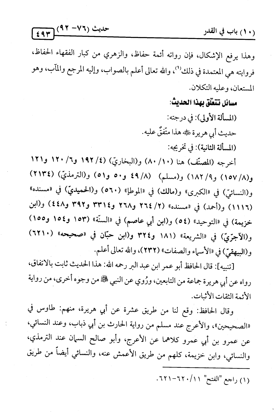 [تنبيه]: قال الحافظ أبو عمر ابن عبد البر رحمه الله: هذا الحديث ثابت بالاتفاق، رواه عن أبي هريرة جماعة من التابعين، ورُوي عن النبي -صلى الله عليه وسلم- من وجوه أخرى، من رواية الأئمة الثقات الأثبات.