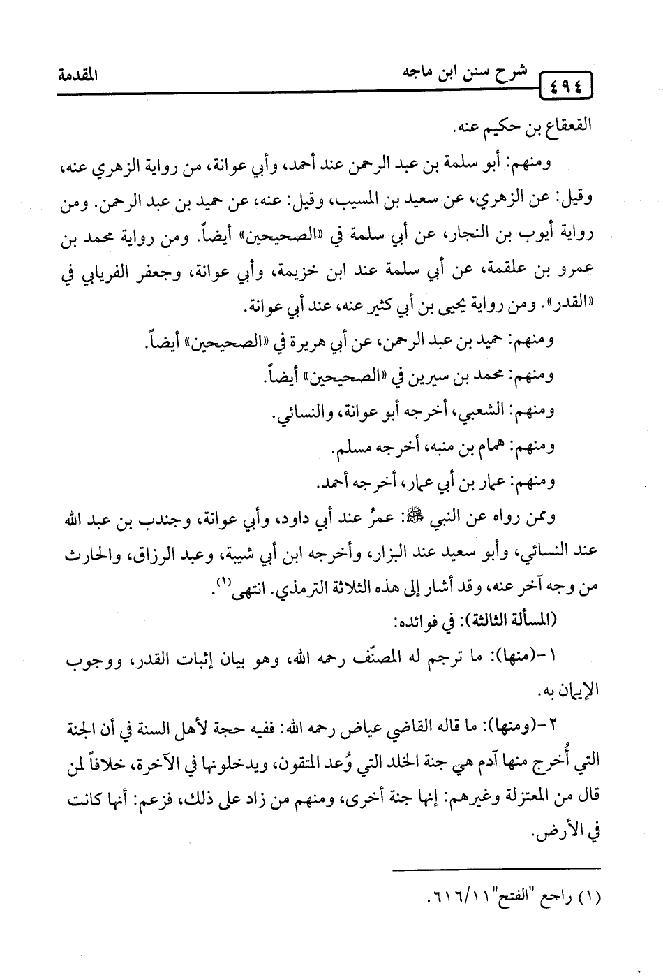 ومنهم: أبو سلمة بن عبد الرحمن عند أحمد، وأبي عوانة، من رواية الزهري عنه، وقيل: عن الزهري، عن سعيد بن المسيب، وقيل: عنه، عن حميد بن عبد الرحمن. ومن رواية أيوب بن النجار، عن أبي سلمة في "الصحيحين" أيضًا. ومن رواية محمد بن عمرو بن علقمة، عن أبي سلمة عند ابن خزيمة، وأبي عوانة، وجعفر الفريابي في "القدر". ومن رواية يحيى بن أبي كثير عنه، عند أبي عوانة.