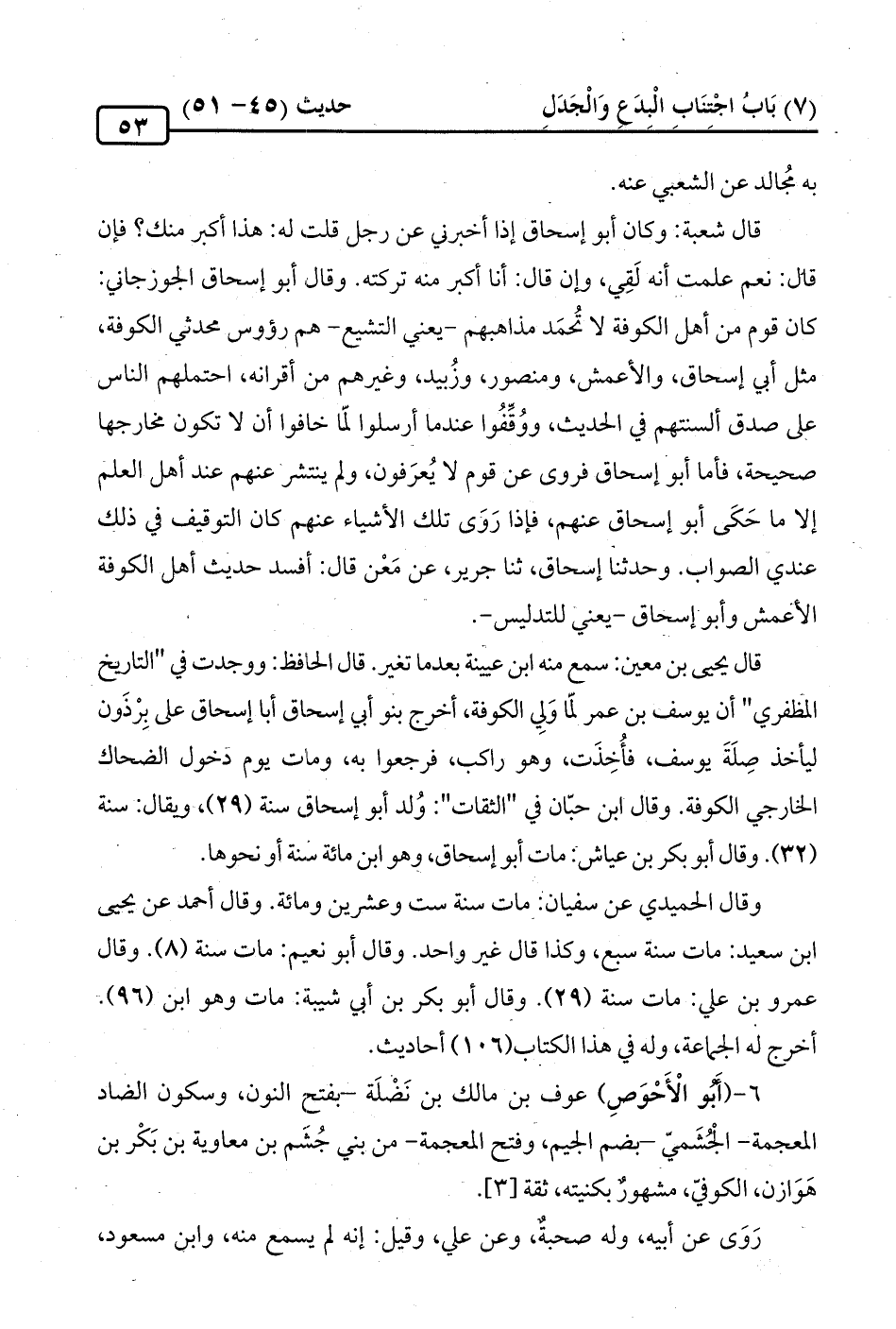 6 - (أَبُو الْأَحْوَصِ) عوف بن مالك بن نَضْلَة -بفتح النون، وسكون الضاد المعجمة- الْجُشَميّ -بضم الجيم، وفتح المعجمة- من بني جُشم بن معاوية بن بَكْر بن هَوَازن، الكوفيّ، مشهورٌ بكنيته، ثقة [3].