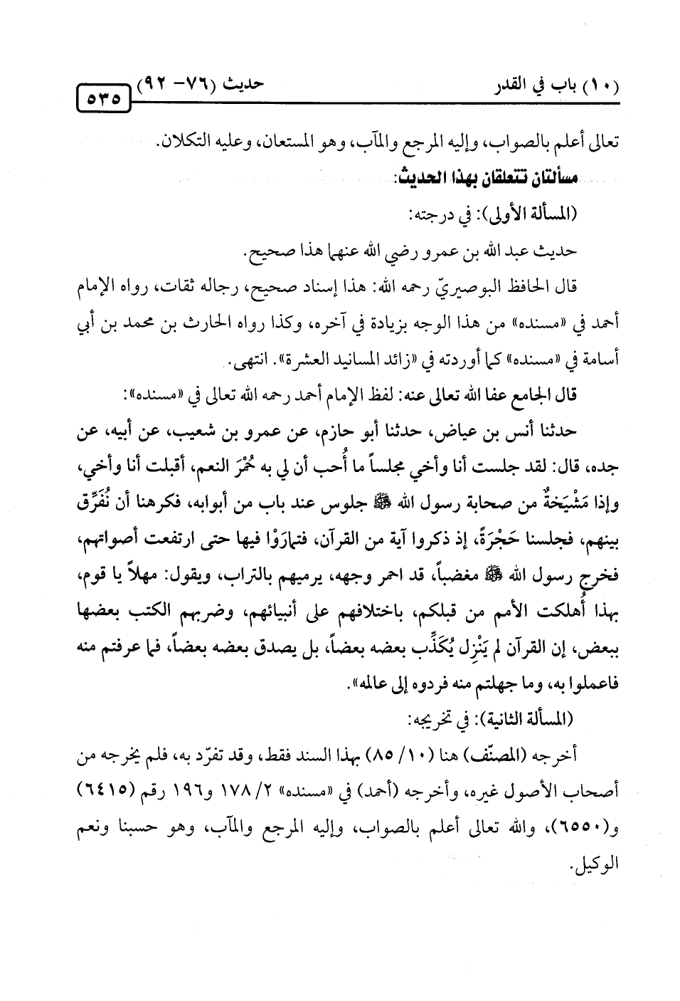 حديث عبد الله بن عمرو رضي الله عنهما هذا صحيح.