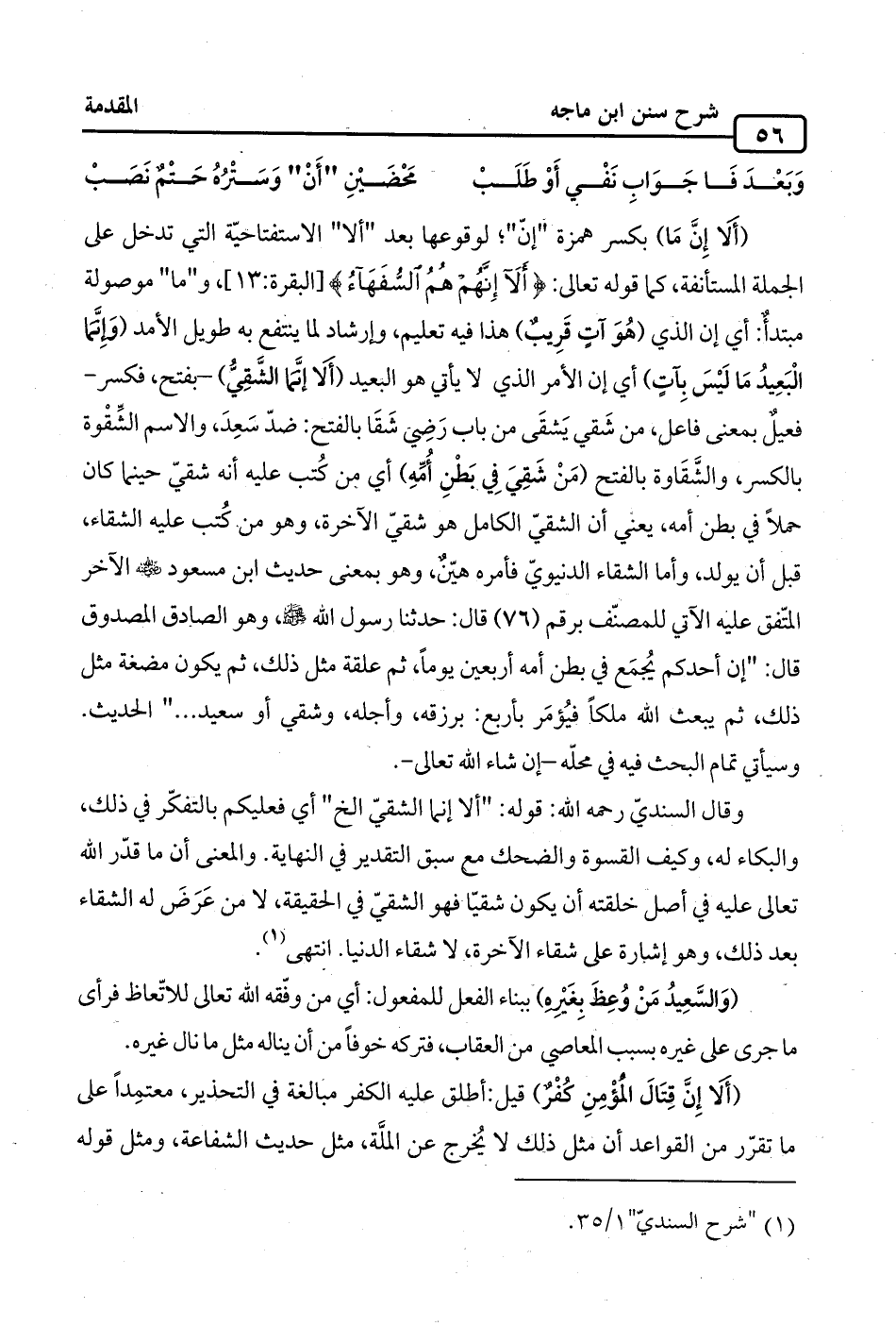 وقال السنديّ رحمه الله: قوله: "ألا إنما الشقيّ الخ" أي فعليكم بالتفكّر في ذلك، والبكاء له، وكيف القسوة والضحك مع سبق التقدير في النهاية. والمعنى أن ما قدّر الله تعالى عليه في أصل خلقته أن يكون شقيّا فهو الشقيّ في الحقيقة، لا من عَرَضَ له الشقاء بعد ذلك، وهو إشارة على شقاء الآخرة، لا شقاء الدنيا. انتهى (¬1).