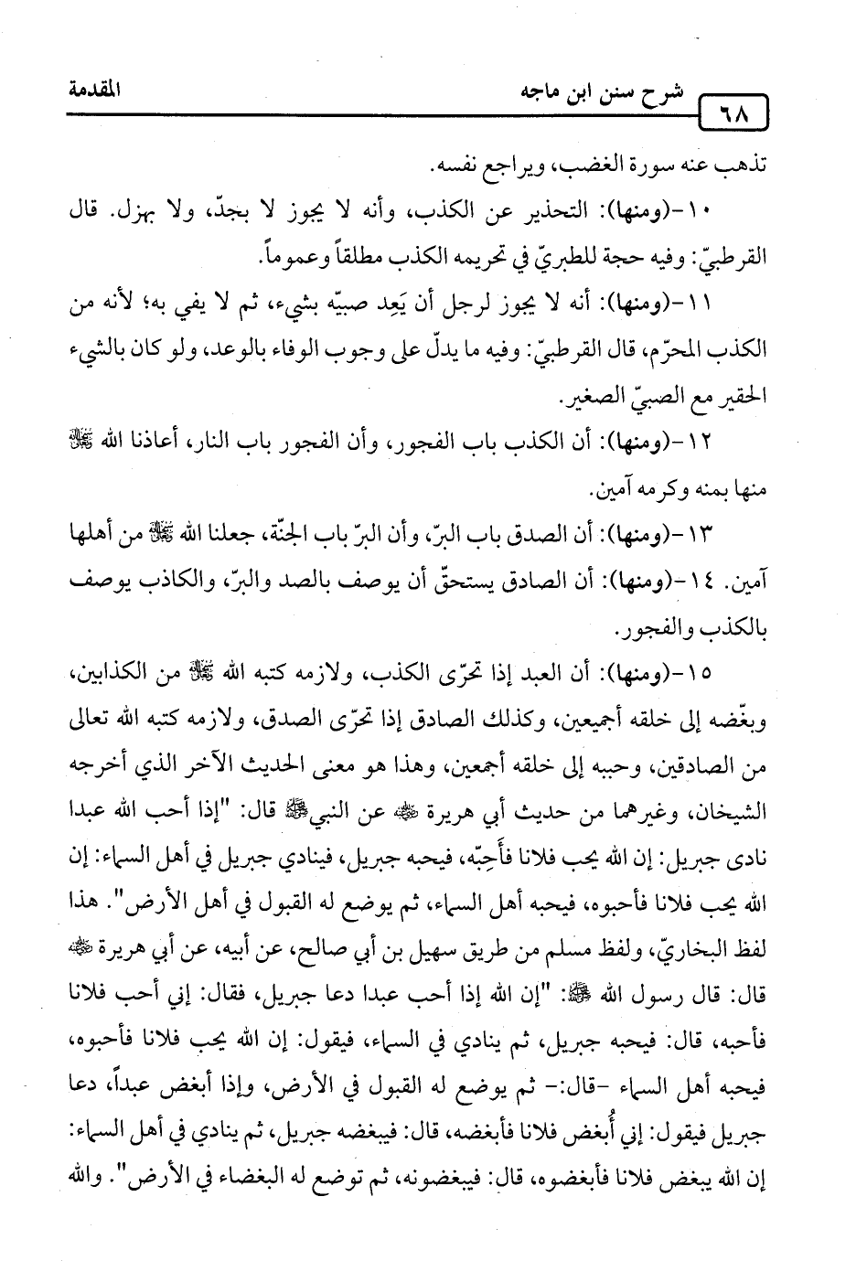 12 - (ومنها): أن الكذب باب الفجور، وأن الفجور باب النار، أعاذنا الله سبحانه وتعالى منها بمنه وكرمه آمين.
