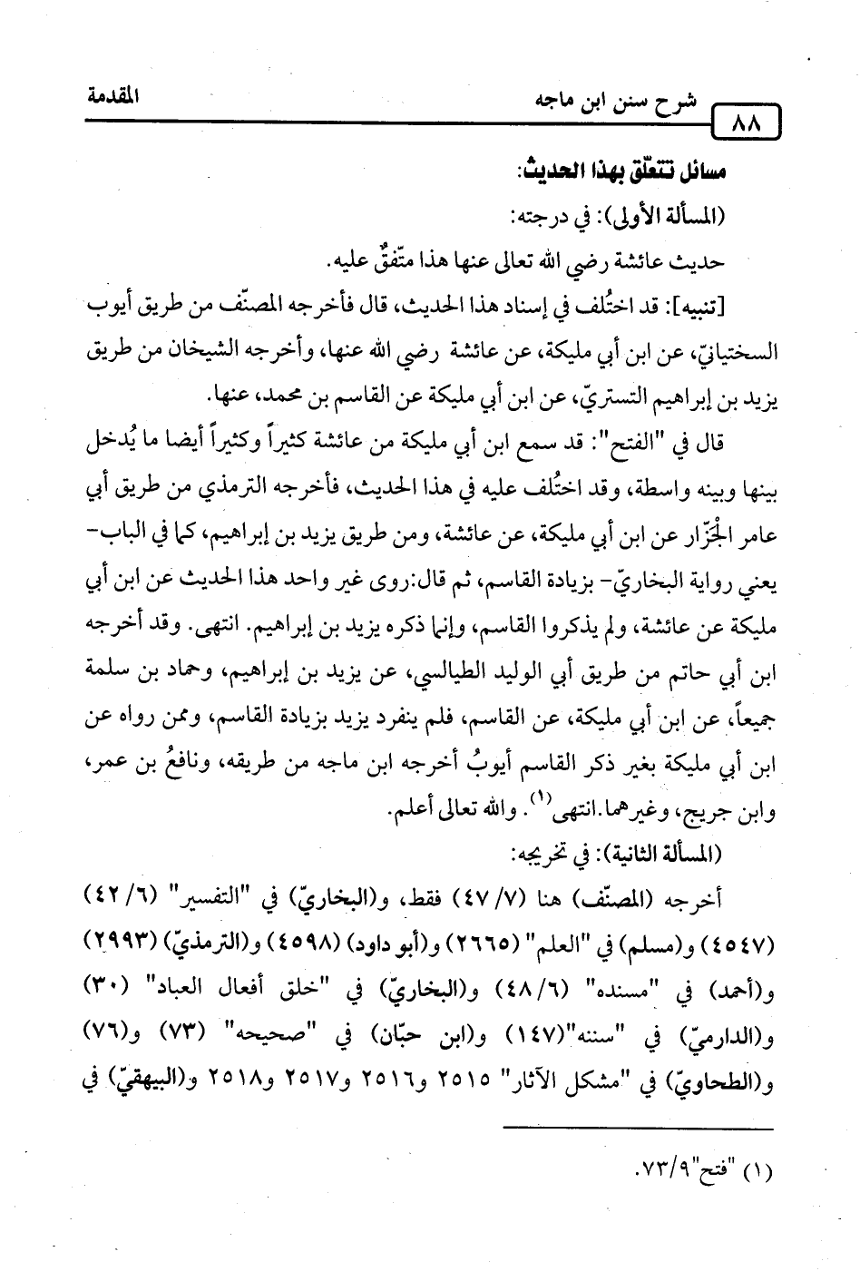 [تنبيه]: قد اختُلف في إسناد هذا الحديث، قال فأخرجه المصنّف من طريق أيوب السختيانيّ، عن ابن أبي مليكة، عن عائشة رضي الله عنها، وأخرجه الشيخان من طريق يزيد بن إبراهيم التستريّ، عن ابن أبي مليكة عن القاسم بن محمد، عنها.