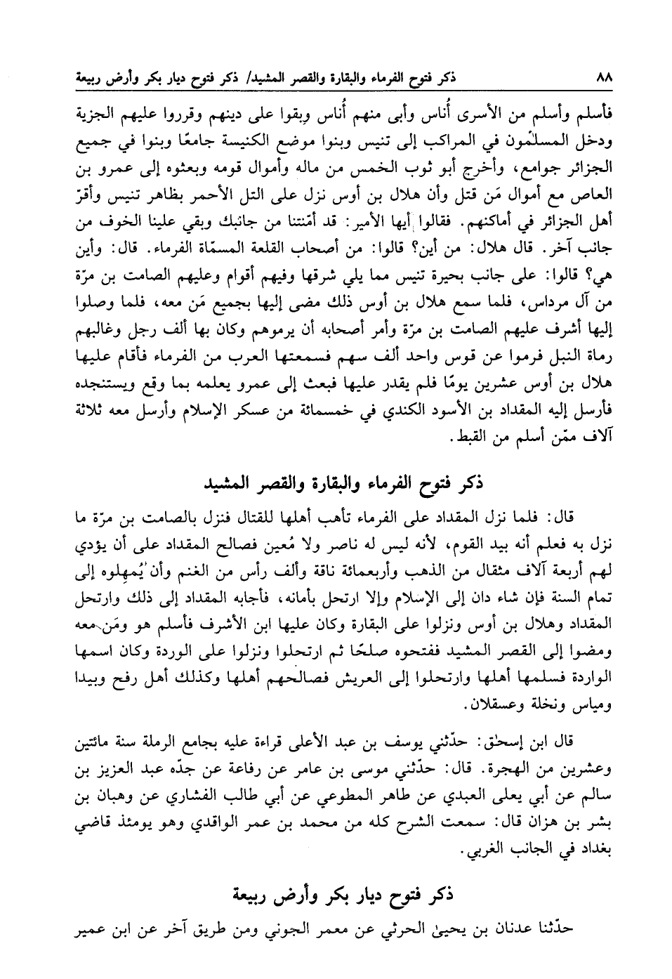 ذكر فتوح الفرماء والبقارة والقصر المشيد.