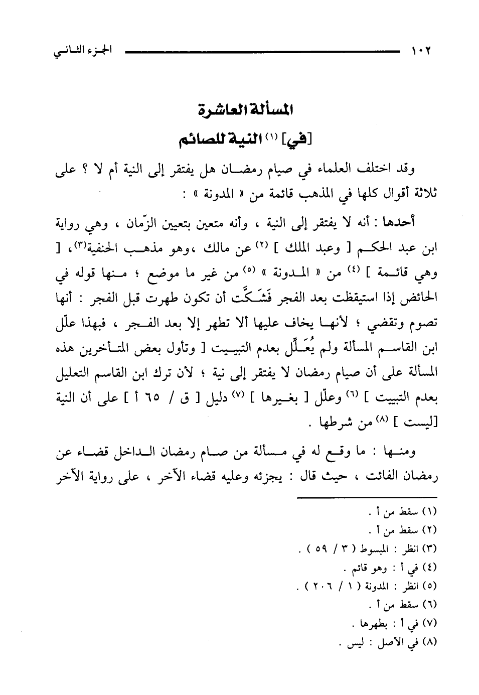 وقد اختلف العلماء في صيام رمضان هل يفتقر إلى النية أم لا؟ على ثلاثة أقوال كلها في المذهب قائمة من "المدونة":