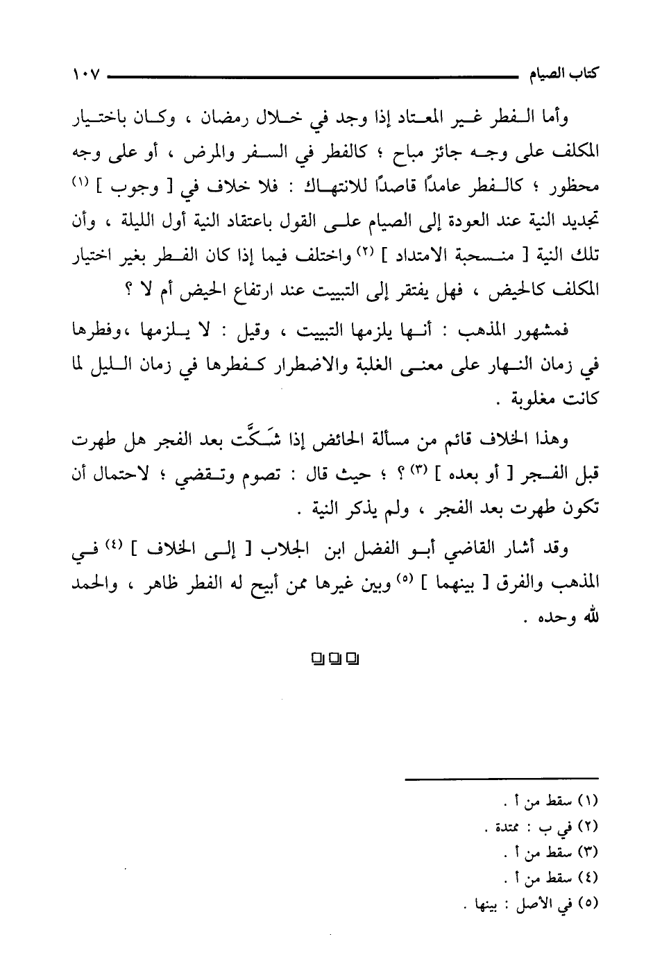 وقد أشار القاضي أبو الفضل ابن الجلاب [إلى الخلاف] (¬4) في المذهب والفرق [بينهما] (¬5) وبين غيرها ممن أبيح له الفطر ظاهر، والحمد لله وحده.