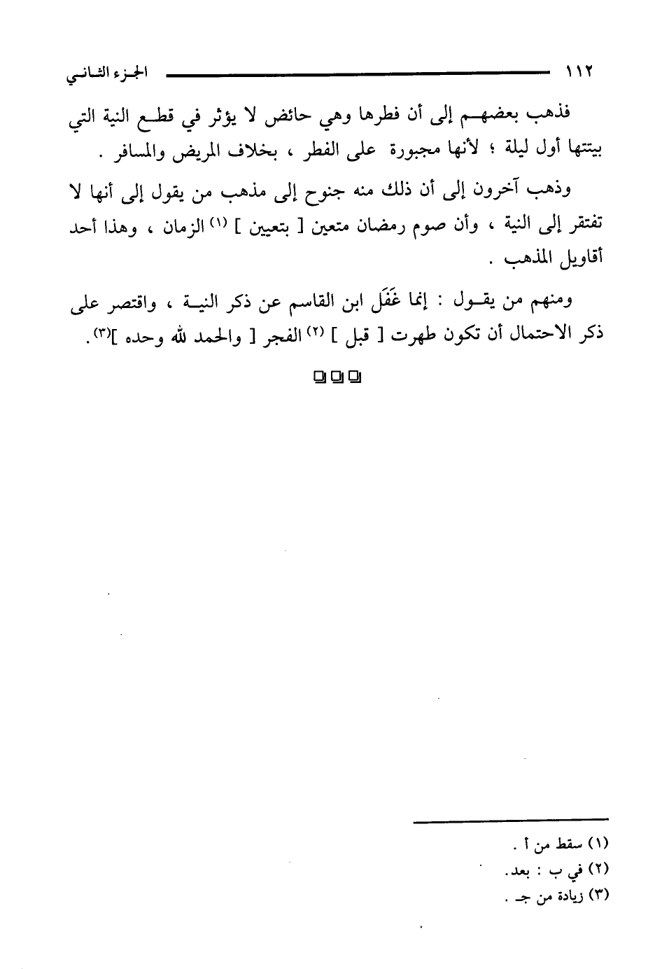 ومنهم من يقول: إنما غَفَل ابن القاسم عن ذكر النية، واقتصر على ذكر الاحتمال أن تكون طهرت [قبل] (¬2) الفجر [والحمد لله وحده] (¬3).