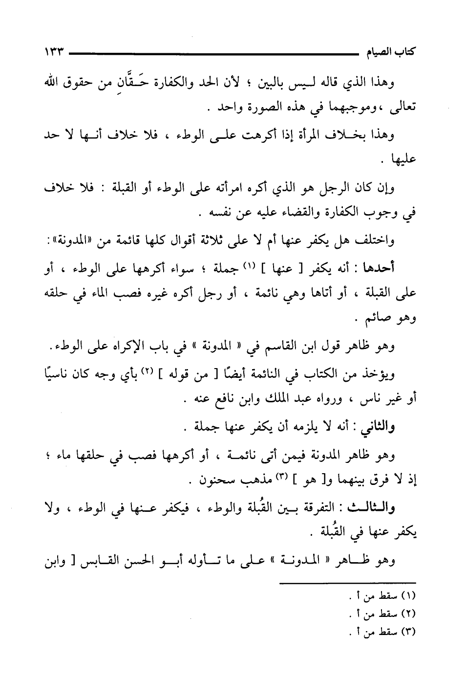 واختلف هل يكفر عنها أم لا على ثلاثة أقوال كلها قائمة من "المدونة":