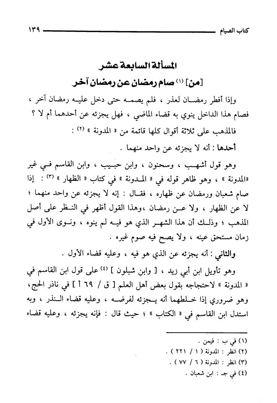 وهو قول أشهب، وسحنون، وابن حبيب، وابن القاسم في غير "المدونة"، وهو ظاهر قوله في "المدونة" في كتاب "الظهار" (¬3): إذا صام شعبان ورمضان عن ظهاره، فقال: إنه لا يجزئه عن واحد منهما؛ لا عن الظهار، ولا عن رمضان، وهذا القول أظهر في النظر على أصل المذهب؛ وذلك أن هذا الشهر الذي هو فيه لم ينوه، ونوى الأول في زمان مستحق عينه، ولا يصح فيه صوم غيره.