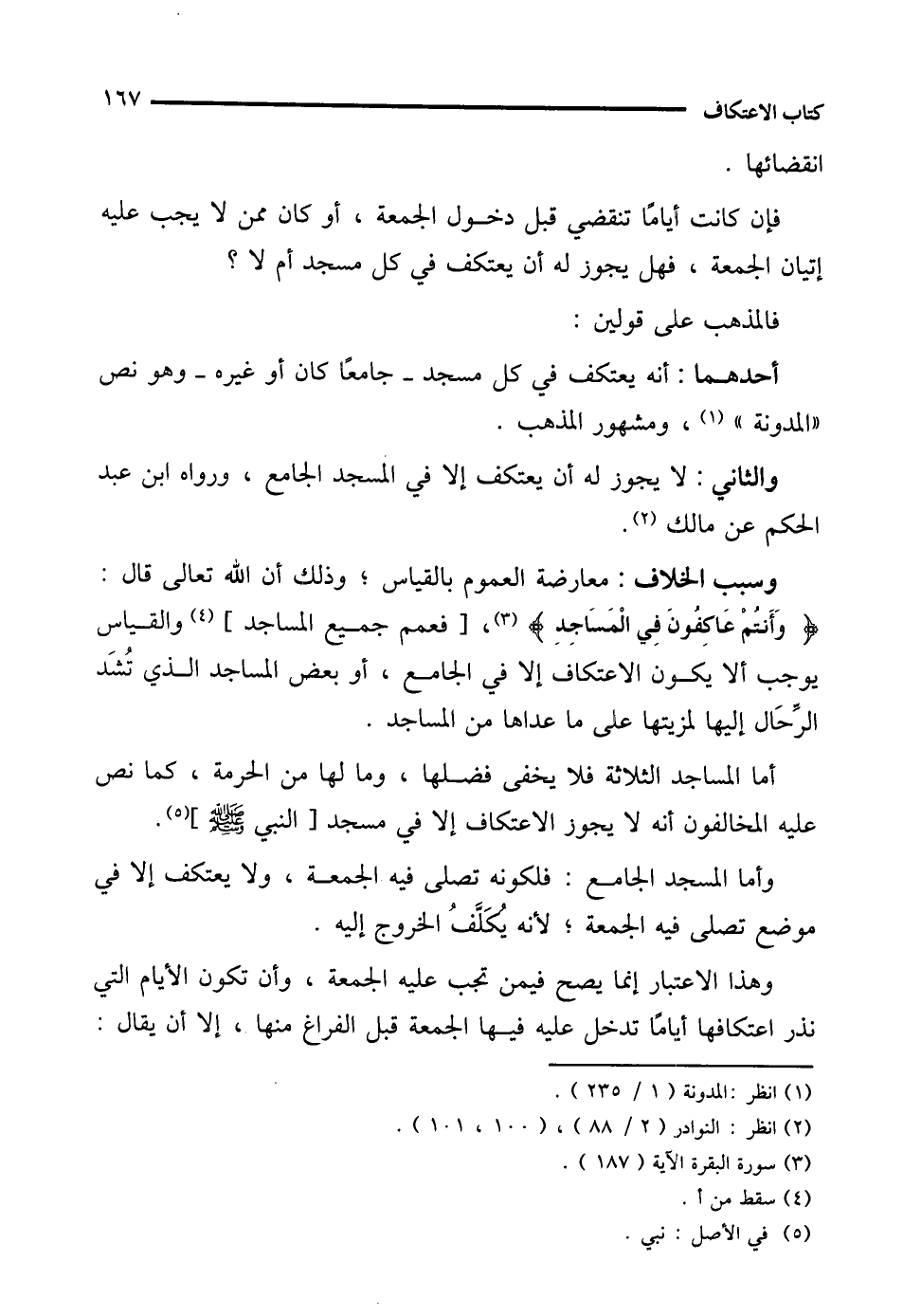 وهذا الاعتبار إنما يصح فيمن تجب عليه الجمعة، وأن تكون الأيام التي نذر اعتكافها أيامًا تدخل عليه فيها الجمعة قبل الفراغ منها، إلا أن يقال: