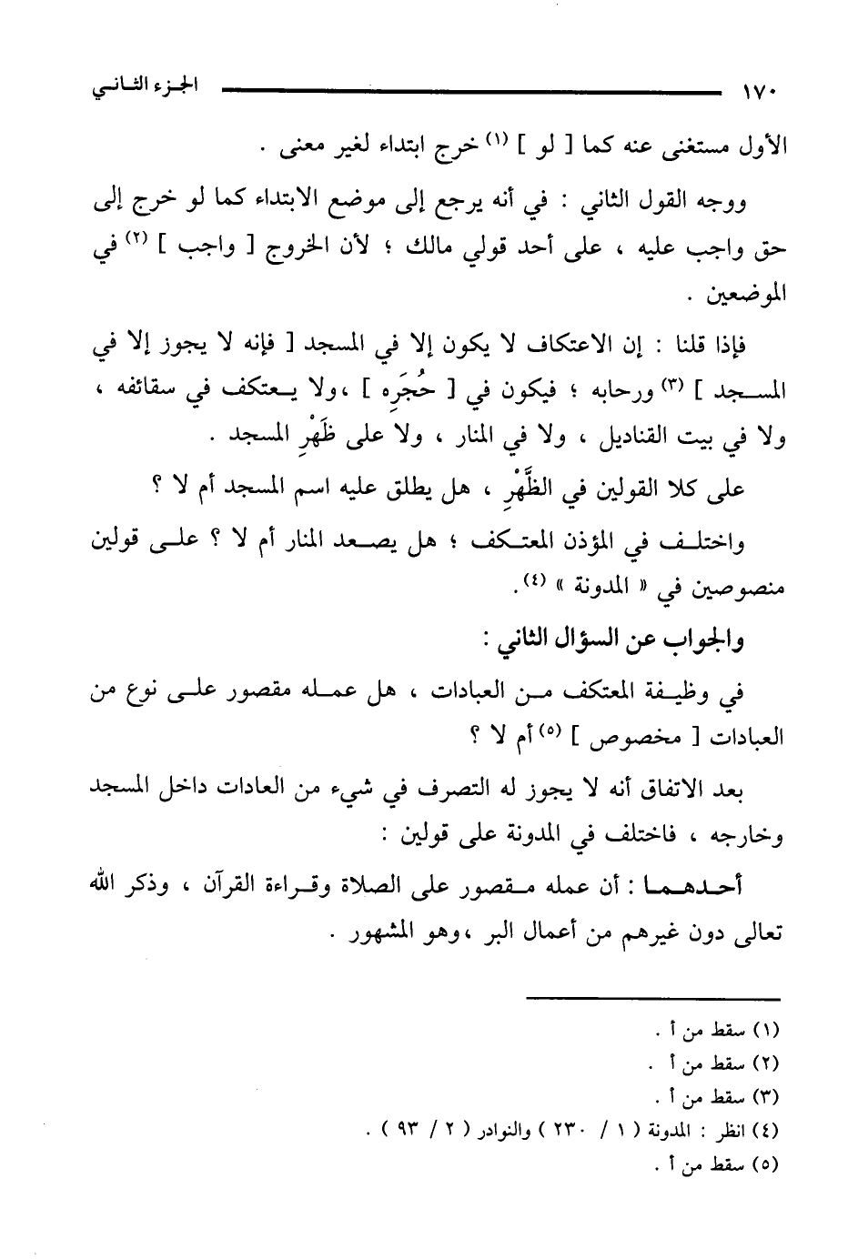 (¬4) انظر: المدونة (1/ 230) والنوادر (2/ 93).