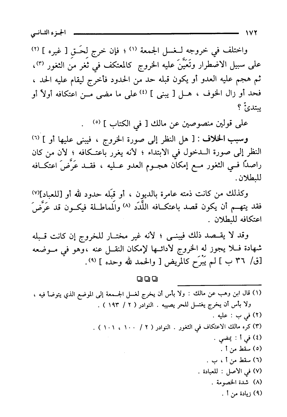 (¬3) كره مالك الاعتكاف في الثغور. النوادر (2/ 100، 101).