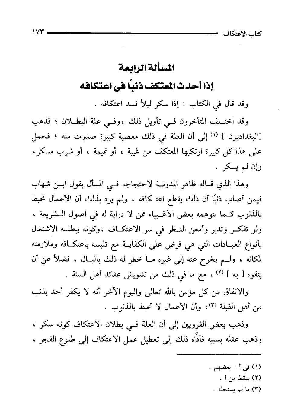 المسألة الرابعة إذا أحدث المعتكف ذنبًا فيه اعتكافه