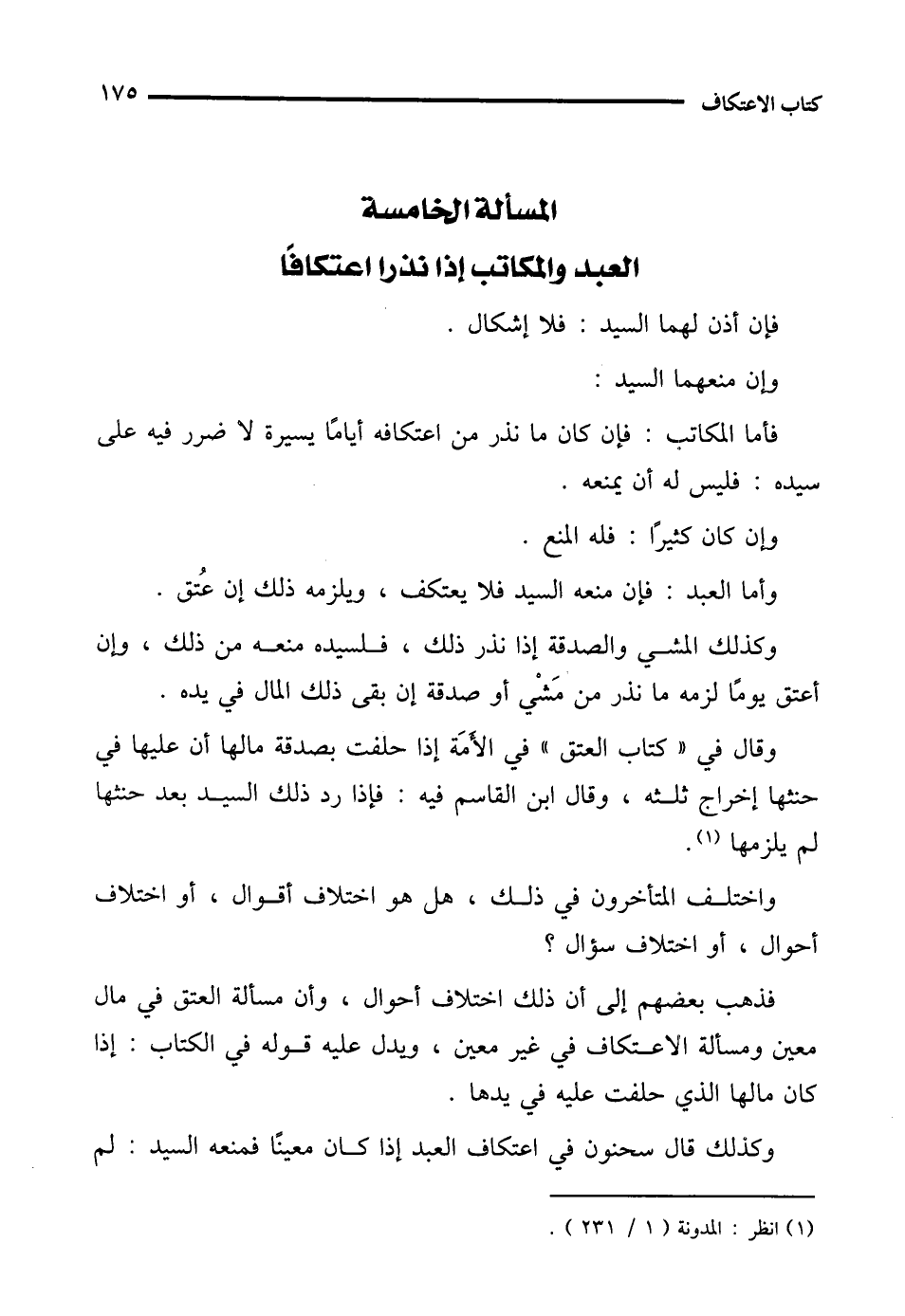 المسألة الخامسة العبد والمكاتب إذا نذرا اعتكافًا