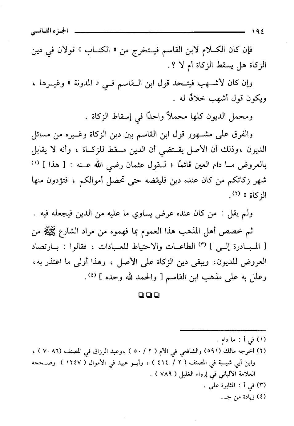 (¬2) أخرجه مالك (591) والشافعي في الأم (2/ 50)، وعبد الرزاق في المصنف (7086)، وابن أبي شيبة في المصنف (2/ 414)، وأبو عبيد في الأموال (1247) وصححه العلامة الألباني في إرواء الغليل (789).