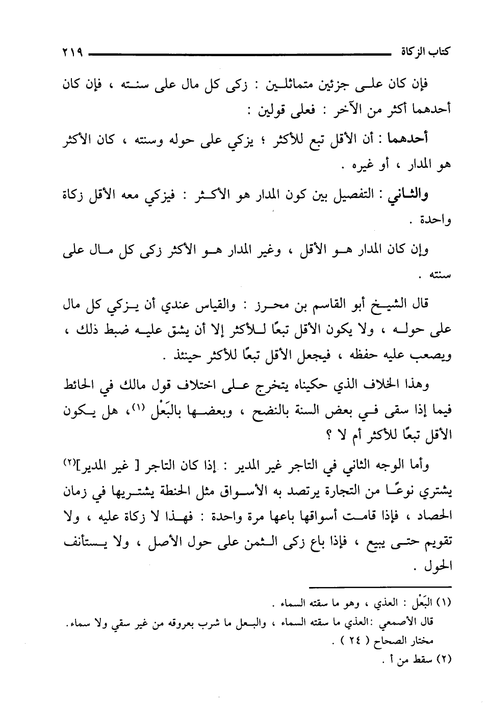 وإن كان المدار هو الأقل، وغير المدار هو الأكثر زكى كل مال على سنته.