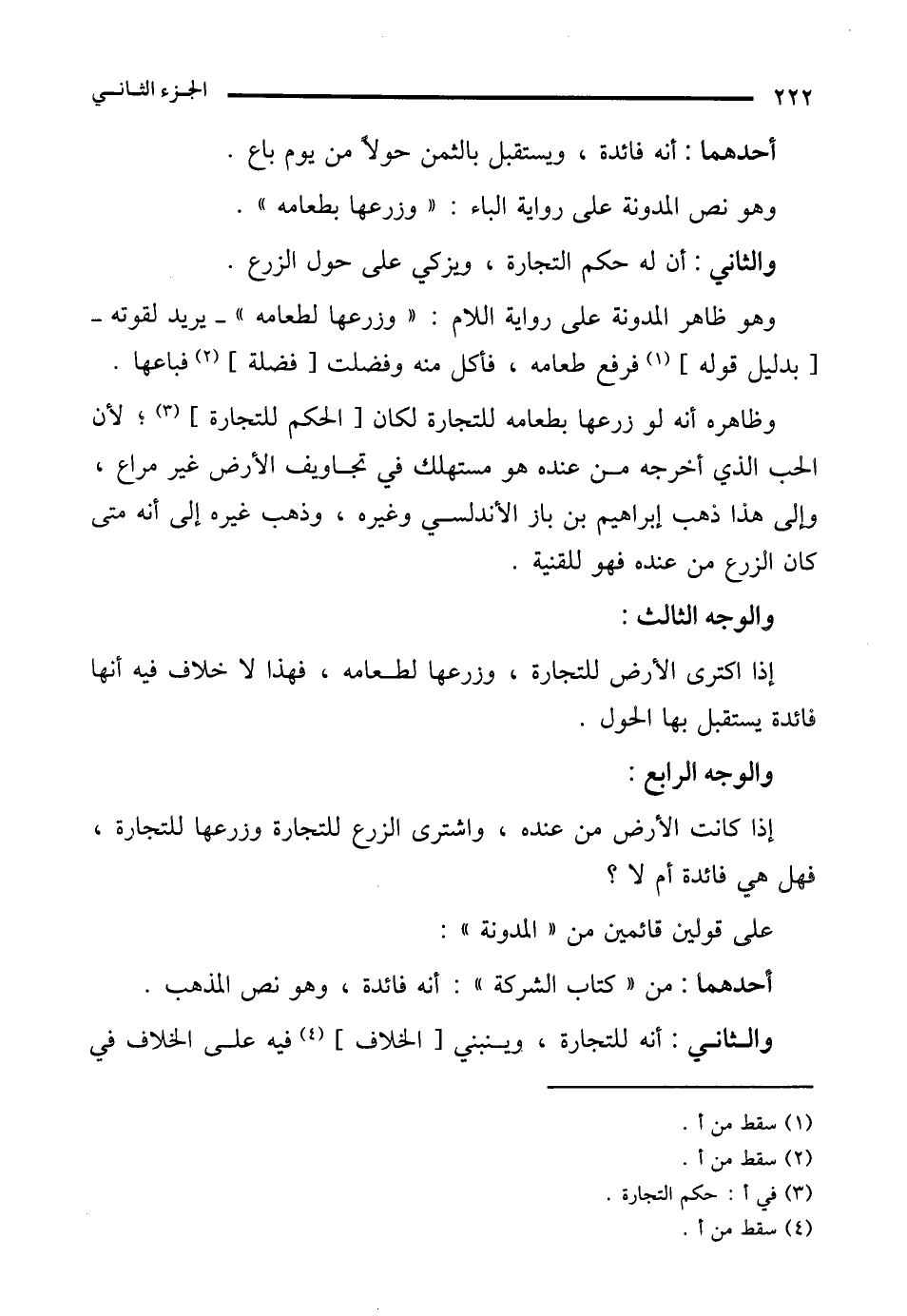 وهو نص المدونة على رواية الباء: "وزرعها بطعامه".