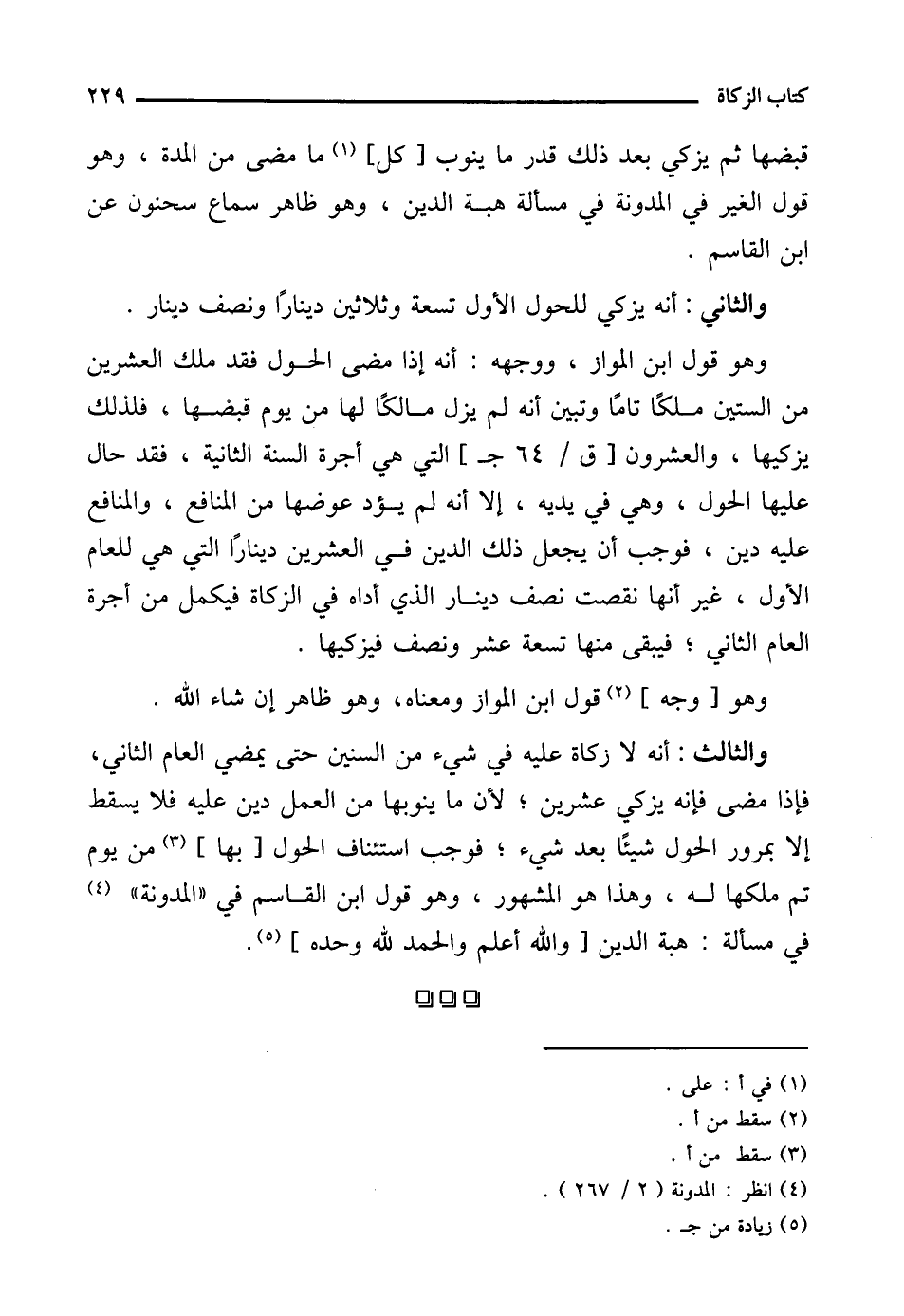 (¬4) انظر: المدونة (2/ 267).