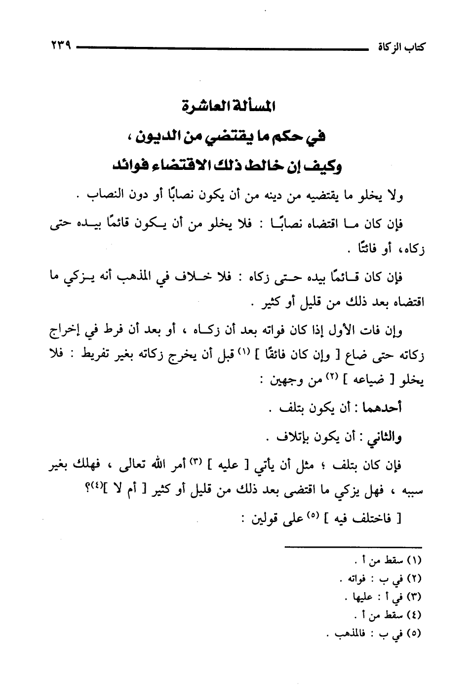 المسألة العاشرة في حكم ما يقتضي من الديون، وكيف إن خالط ذلك الاقتضاء فوائد