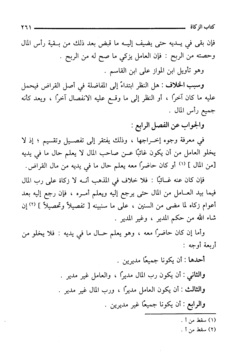 والجواب عن الفصل الرابع: