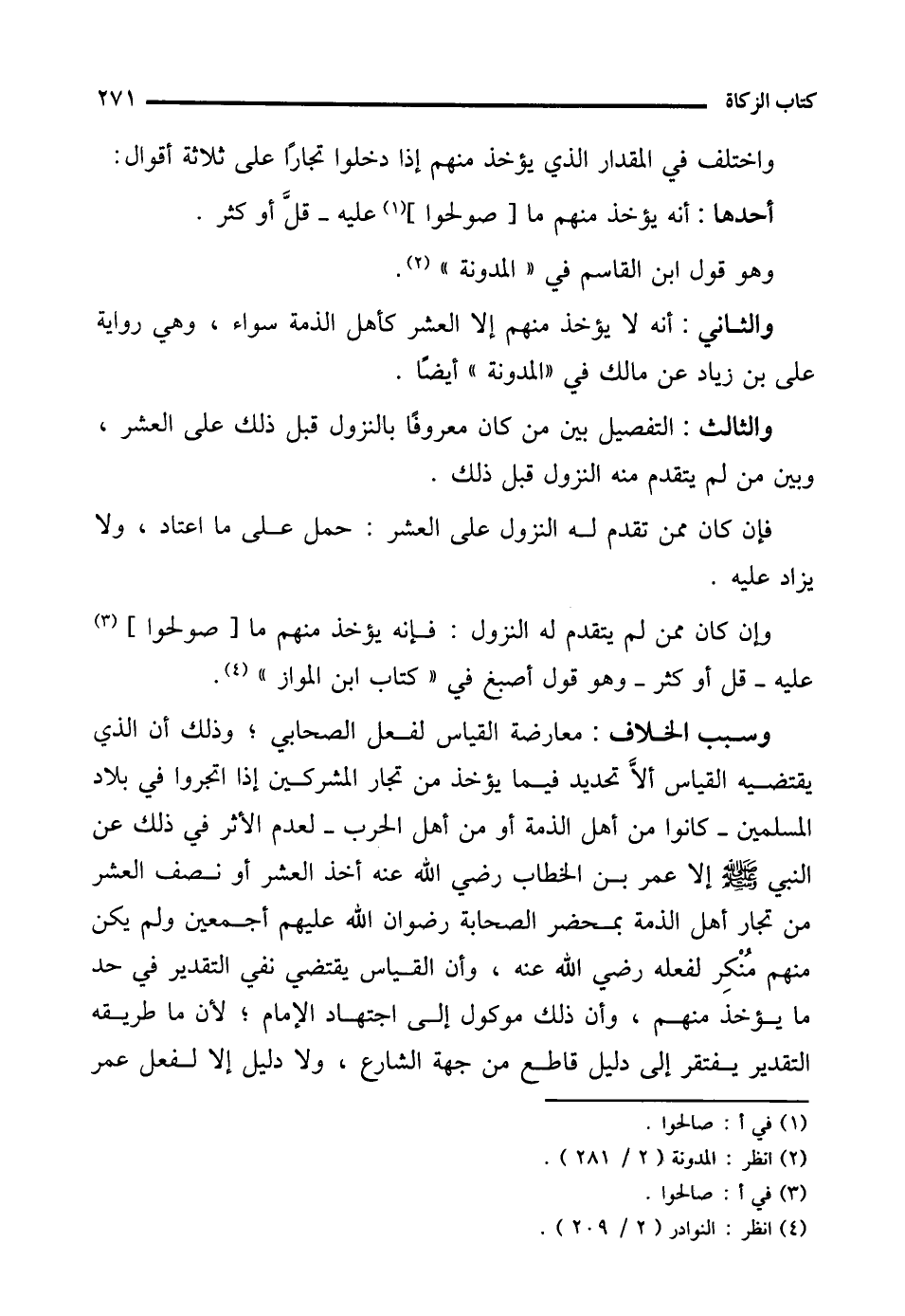 واختلف في المقدار الذي يؤخذ منهم إذا دخلوا تجارًا على ثلاثة أقوال:
