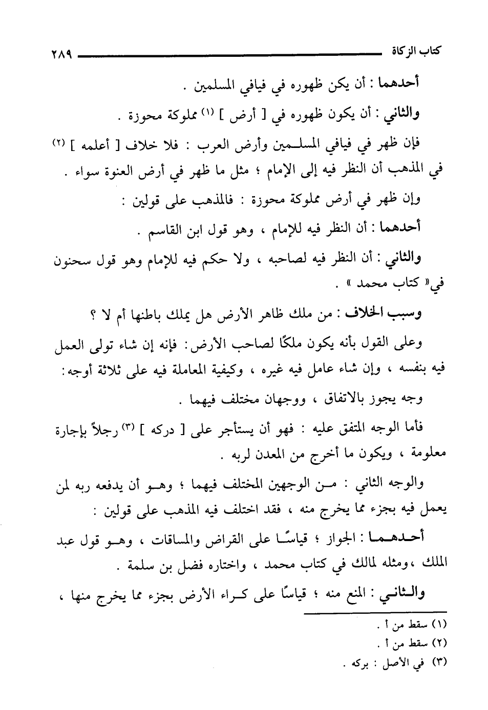 وعلى القول بأنه يكون ملكًا لصاحب الأرض: فإنه إن شاء تولى العمل فيه بنفسه، وإن شاء عامل فيه غيره، وكيفية المعاملة فيه على ثلاثة أوجه: وجه يجوز بالاتفاق، ووجهان مختلف فيهما.